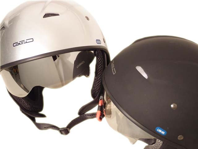 Para Supply is pleased to offer the Geo Explorer Helmet manufactured by Geo SKY. It features an integral polycarbonate visor. the buit in visor slide up into the helmet when not in used which significantly reduces aerodynamic drag. The shatter-proof Tinted visor incorporates UV protection, antireflection, antiscratch coatings and antifog.